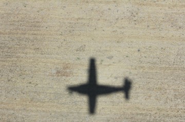 Shadow of our plane as we fly into the bush