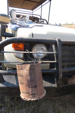 Elephant dung burns in here to repeal the tsetse flies. It works.