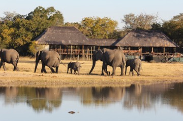 Sometimes the elephants will take a drink from the swimming pool on the lodge right