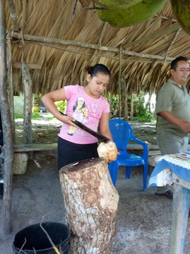 Cutting coconut