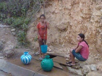 Getting water beside the road