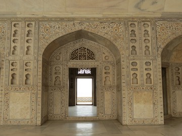Shah Jahan, builder of the Taj Mahal, was imprisoned by his son in Agra Fort for 8 years, until his death. He could look out these windows and see the Taj Mahal where his wife was entombed.