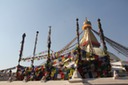 The Boudhanath stupa ( spiritual monument) is the largest in Nepal and a very important place of pilgrimmage for Buddhists, especially refugees from Tibet. Centuries old, its origins are unclear but it's mysticism and religious significance is evident by the pilgrims that come to spin the prayer wheels. Surrounded by temples, shops, and buildings, it was a highlight of Kathmandu.