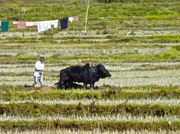 Still using the simple wooden plow and animals in the fields